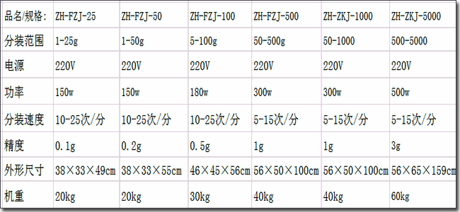 粉劑分裝機(jī)可選型號(hào):