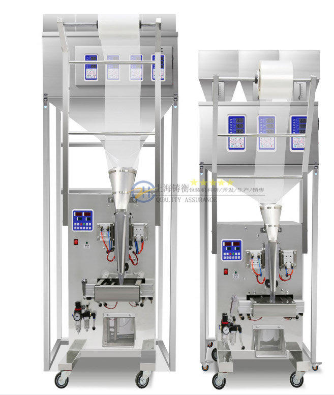 上海鑄衡廠家銷售的顆粒小型包裝機主要適用于包裝速溶咖啡、白糖顆粒、涼茶顆粒、小米、西米、種子、青豆、豆類、五谷雜糧和食品顆粒等細小顆粒、圓形顆粒、小長條狀顆粒等物品,0.2-1000克小劑量的自動包裝,主要包裝材料為復合腹,無紡布,紙塑膜等材料,是在高溫下粘合的,該款顆粒小型包裝機能夠自動的完成計量、充填、制袋、封合、切斷、記數、打印日期等功能。
